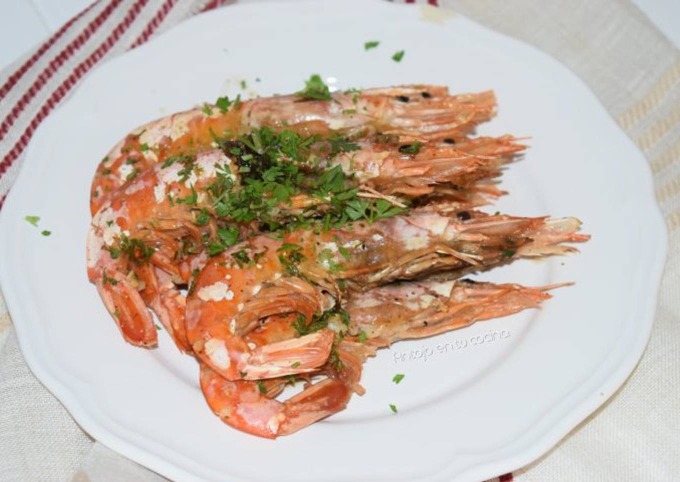 Gambas o langostinos al horno con ajo y perejil, receta muy fácil sin manchar
