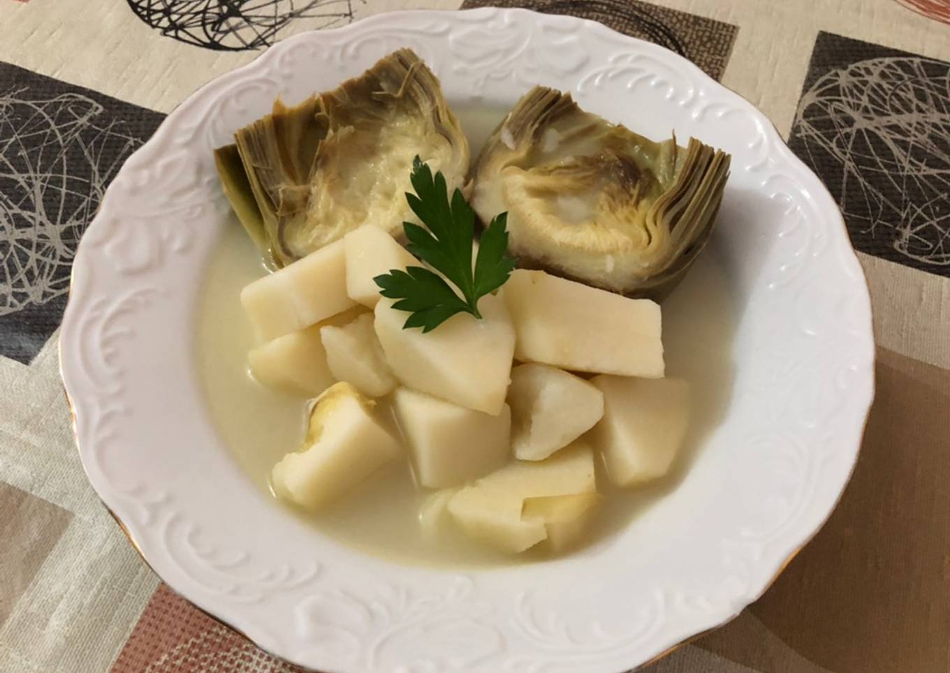 Hervido de patatas y alcachofas
