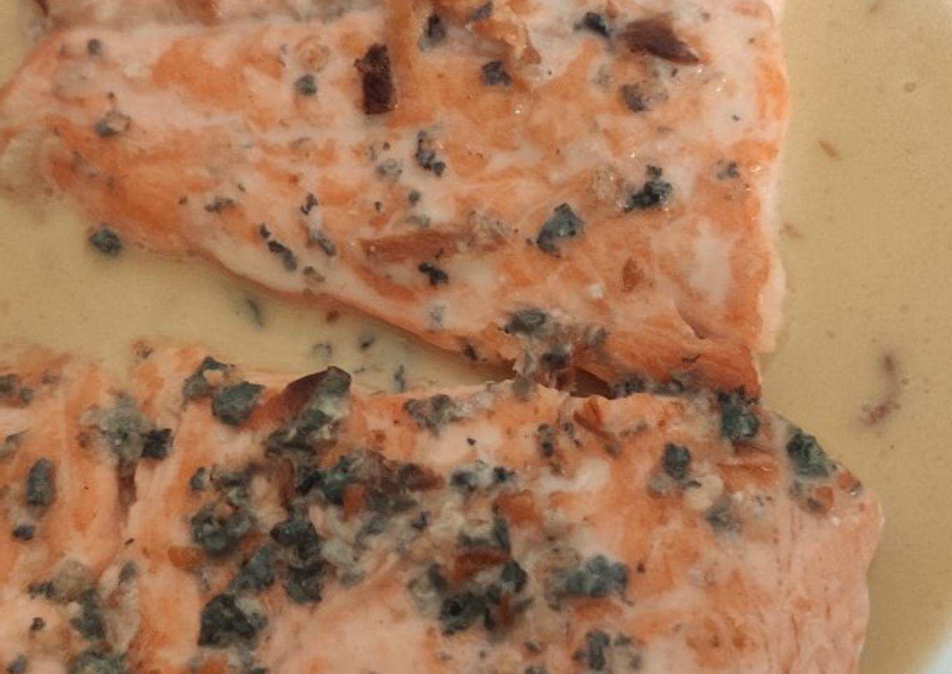 Salmón a la plancha con salsa roquefort