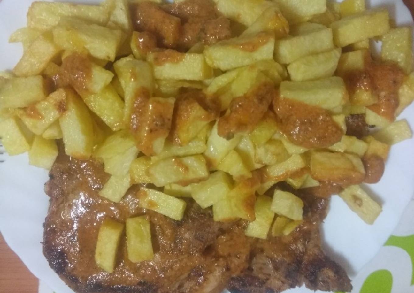 Hey everyone, hope you're having an amazing day today. Today, I will show you a way to prepare a distinctive dish, Chuletas de cerdo al salmorejo con papas fritas. It is one of my favorites. For mine, I'm gonna make it a bit unique. This is gonna smell and look delicious.