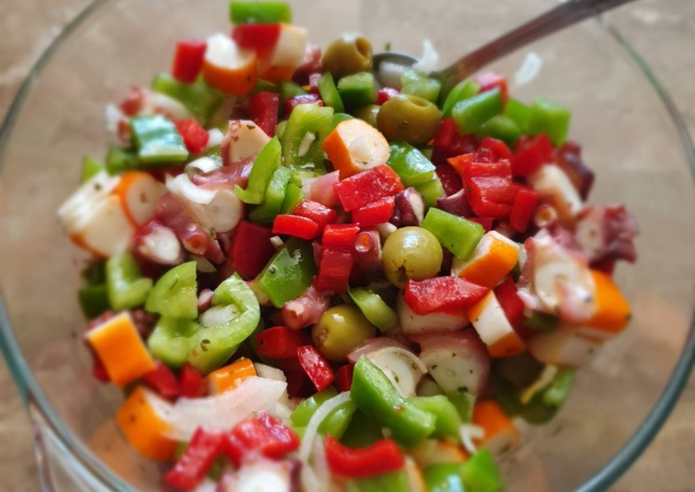 - Removemos bien y añadimos la aceitunas. Refrigerados 1h antes de servir para que este bien fresquito y a disfrutar.