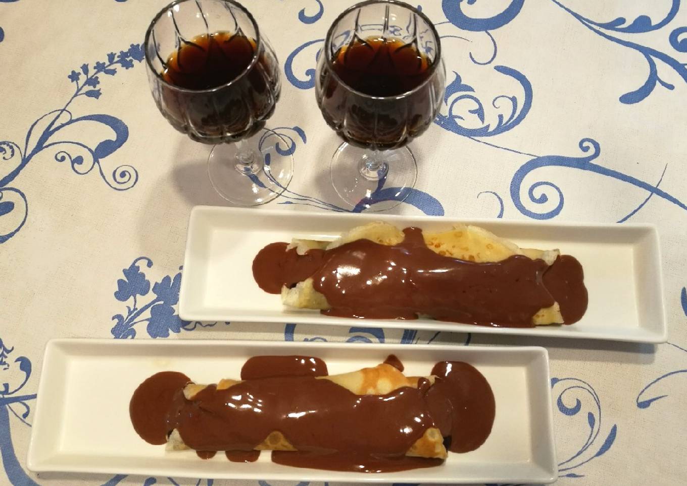 - Servimos la crep bien fría cubierta de la crema de chocolate caliente.