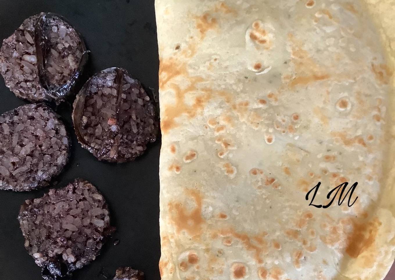 El acompañamiento tan solo son rodajas de morcilla de arroz a la plancha.