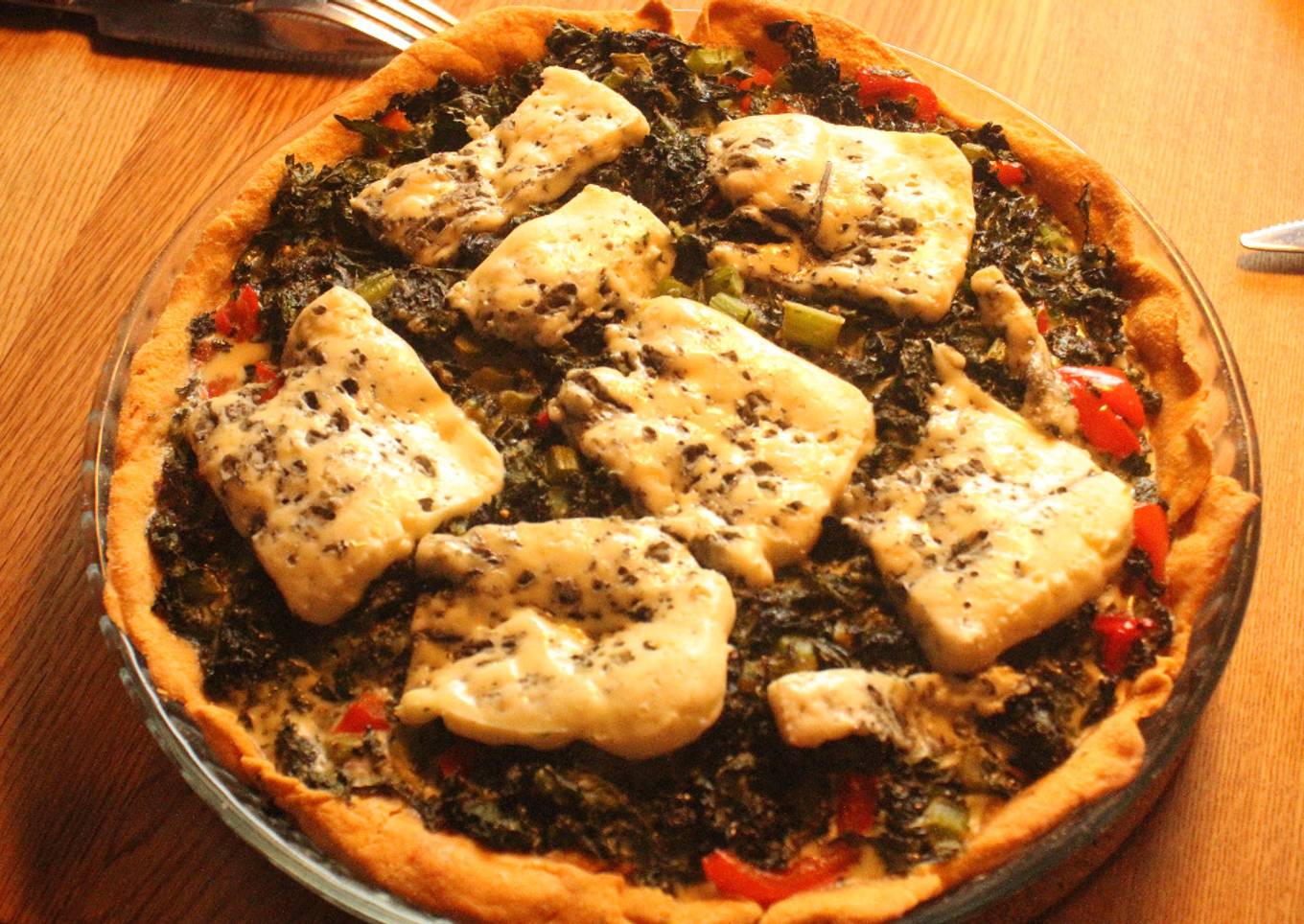 Pastél de repollo verde crespo a cielo abierto y roqueforteado