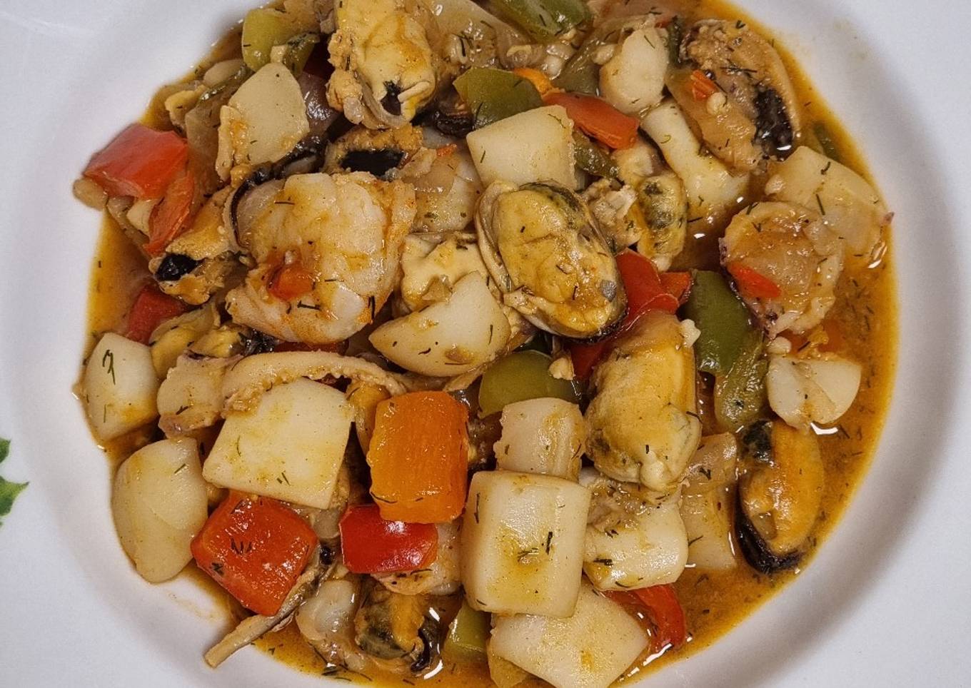 Steps to make to make Salteado de chocos, mejillones y langostinos